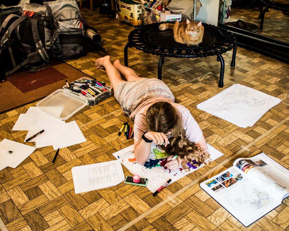 While I was printing these maps, I did print the giant-sized world map to replace the giant kid-made map of Europe that's been on our wall since the big kid took AP European History. I'm probably going to hold off on assembling, mounting, and having her label it, though, because surely the kid is sick of map labeling at the moment. Better to hold off until the spring, perhaps, and then use it as a review before the actual AP exam.