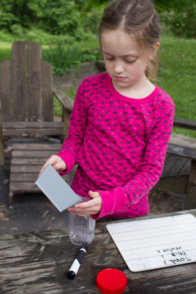 And that's pretty much how all our projects end up, so no disappointment there. The good news is that now that I've figured out what NOT to use--sand, dirt--I've got a good idea about what TO use, and as a different project on a different day, I set the kids up creating their own density discovery bottles out of all kinds of cool ingredients. I'll show those to you soon!